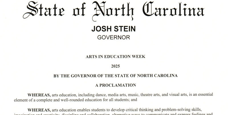 Governor Proclaims NC Arts in Education Week 2025 Governor Josh Stein has officially proclaimed September 14-20, 2025 NC Arts in Education Week, as the field of arts education joins together in communities across the country to advocate, educate, and celebrate about…